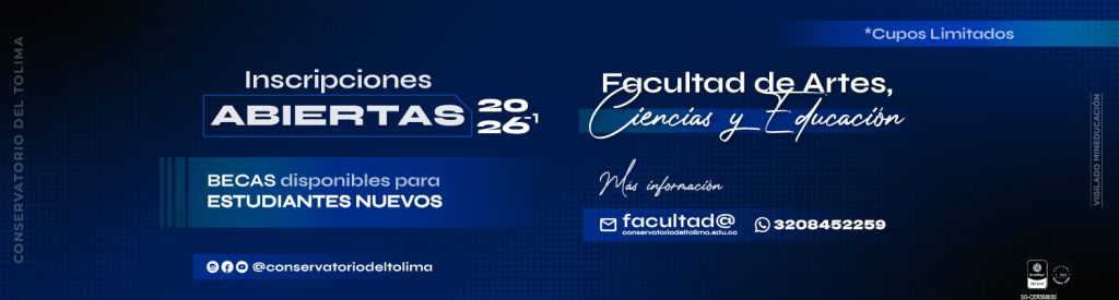 El Conservatorio del Tolima, institución universitaria acreditada en alta calidad, anuncia la apertura oficial de su proceso de inscripciones 2026-1 para los programas de pregrado…